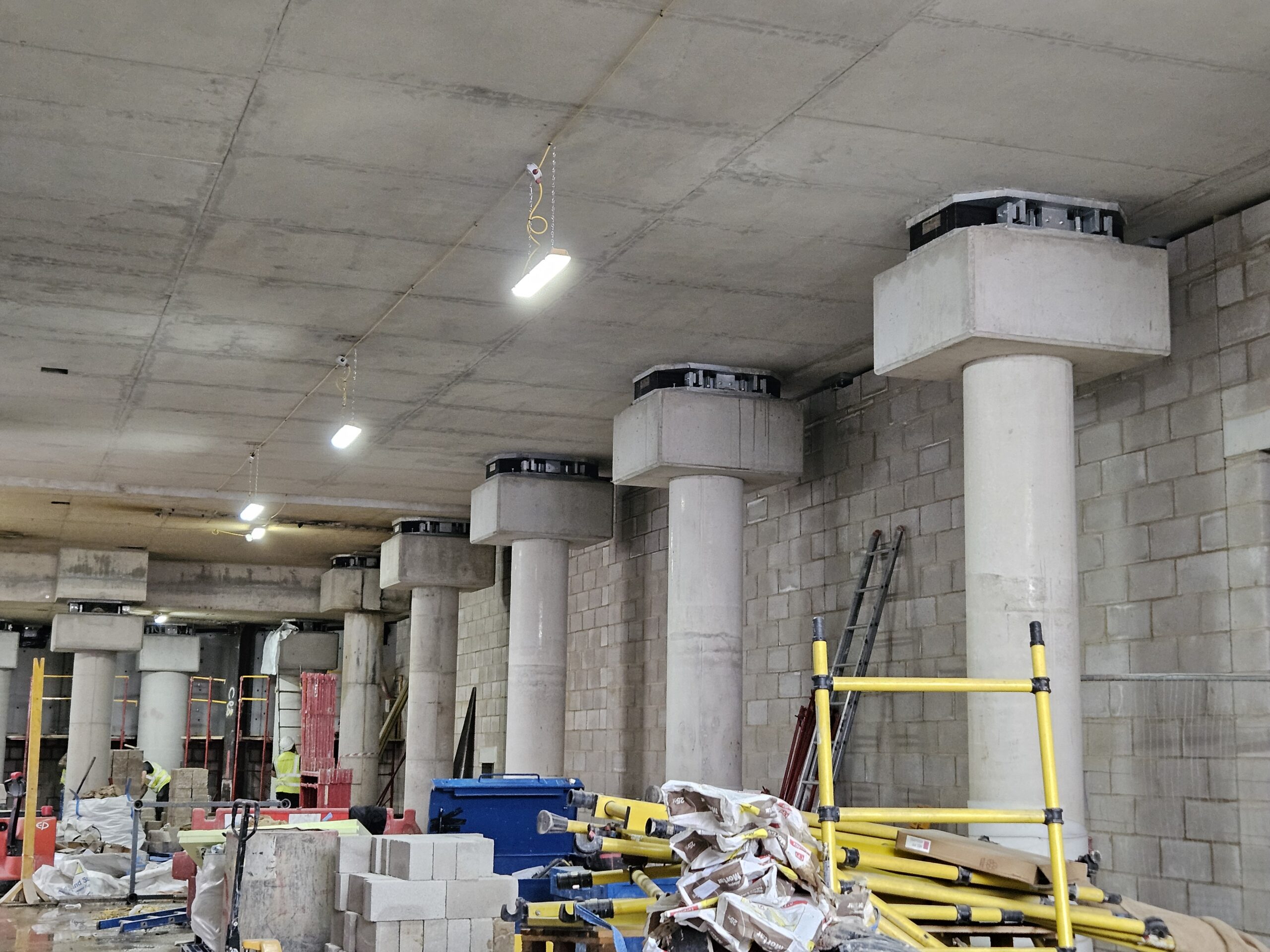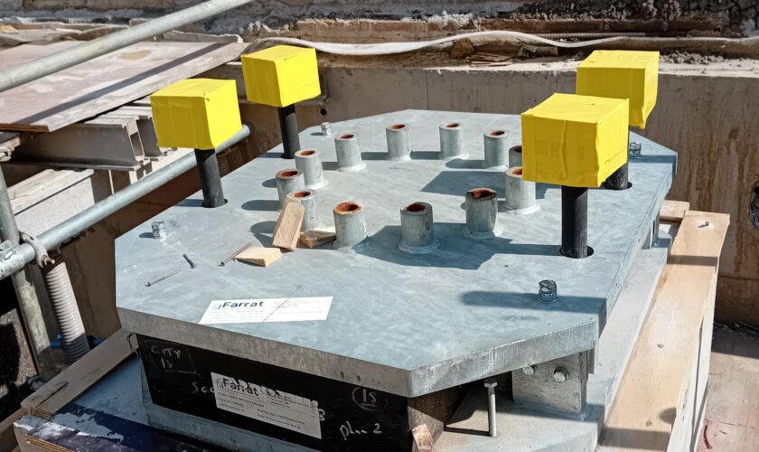 The Citicape House development presented a significant challenge due to its proximity to the National Rail tunnels, where train movements were predicted to transmit high levels of ground‑borne noise and vibration directly into the 12‑storey structure. Acoustic assessments confirmed that without specialist intervention, the building would fail to meet the required noise criteria, particularly for sensitive student accommodation spaces. At the same time, the structure required a solution that could manage substantial and varied vertical and lateral loads across columns, cores, walls, and slab interfaces.