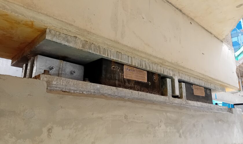 Working behind the scenes in key structural areas, Farrat supplied 245 hybrid bearings, 350m² of Isofoam and 85m² of VFT system, alongside a range of bespoke components including 156 acoustic tension washer assemblies, 66 capping beam lateral assemblies and 99 steel‑rubber bearing assemblies with integrated safety features