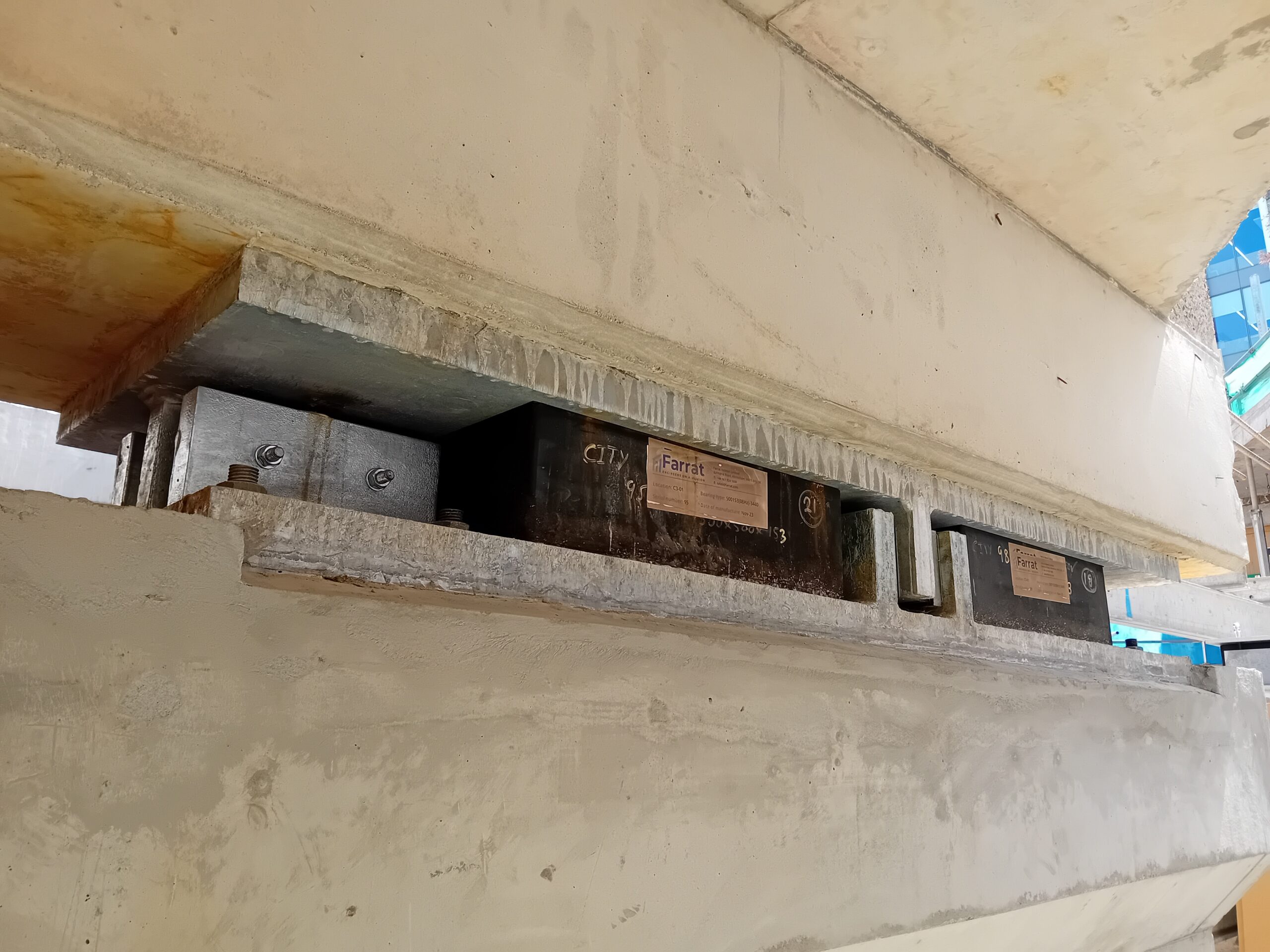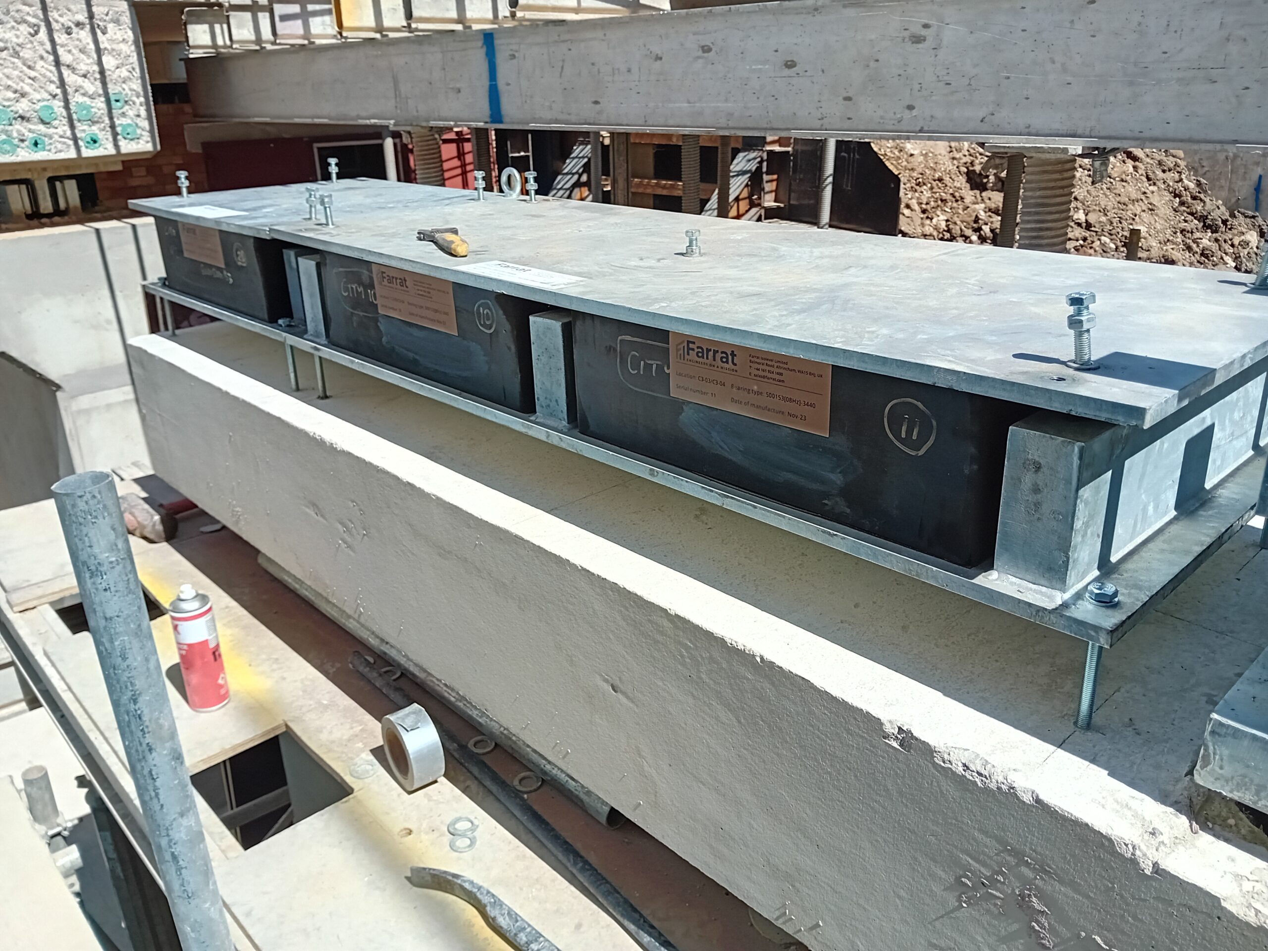 Working behind the scenes in key structural areas, Farrat supplied 245 hybrid bearings, 350m² of Isofoam and 85m² of VFT system, alongside a range of bespoke components including 156 acoustic tension washer assemblies, 66 capping beam lateral assemblies and 99 steel‑rubber bearing assemblies with integrated safety features