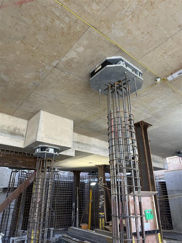 The Citicape House development presented a significant challenge due to its proximity to the National Rail tunnels, where train movements were predicted to transmit high levels of ground‑borne noise and vibration directly into the 12‑storey structure. Acoustic assessments confirmed that without specialist intervention, the building would fail to meet the required noise criteria, particularly for sensitive student accommodation spaces. At the same time, the structure required a solution that could manage substantial and varied vertical and lateral loads across columns, cores, walls, and slab interfaces.