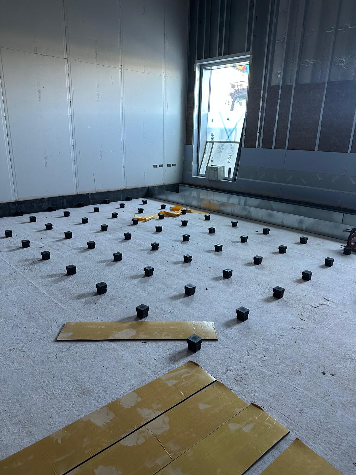 Where an existing structure can’t support the load of a heavyweight floating slab, CineFLOOR LITE utilises our very lowest dynamic stiffness isolators to extract the maximum possible low-frequency performance from a lightweight floating slab.