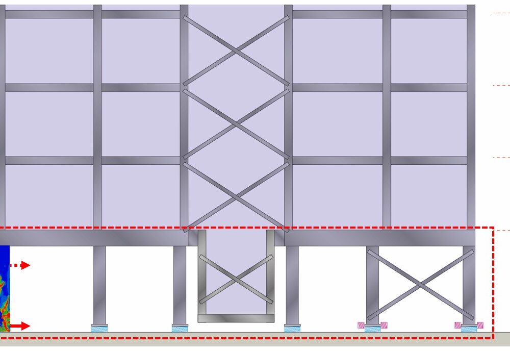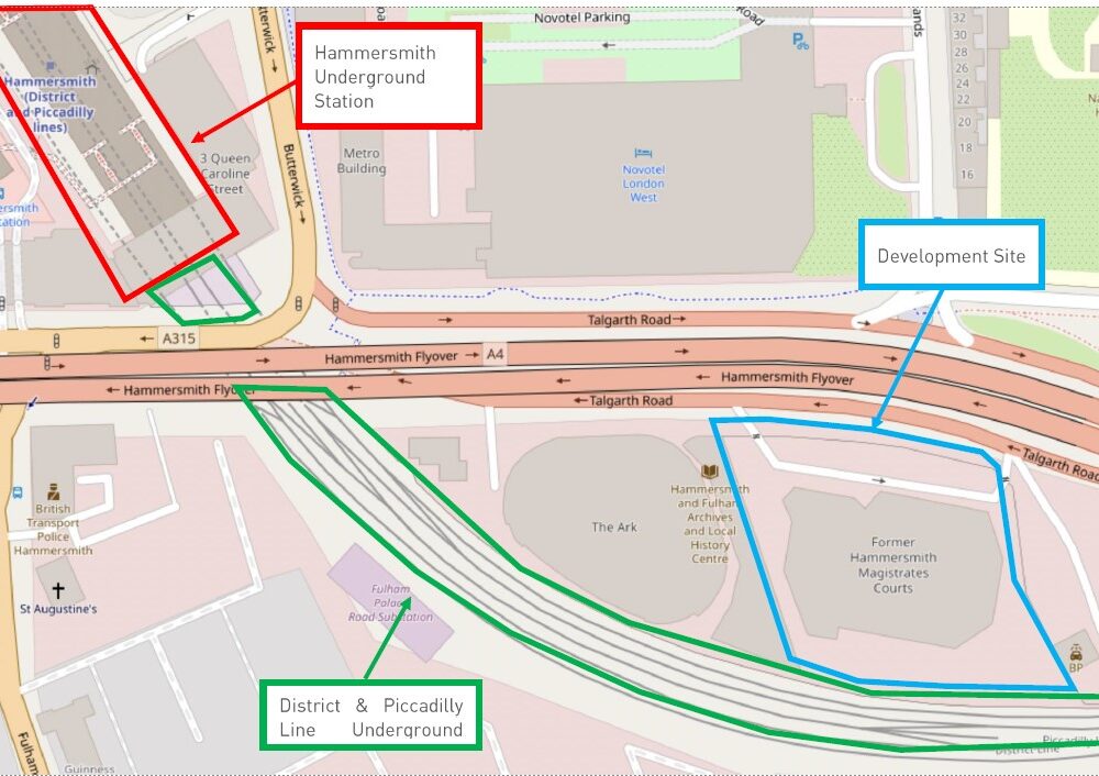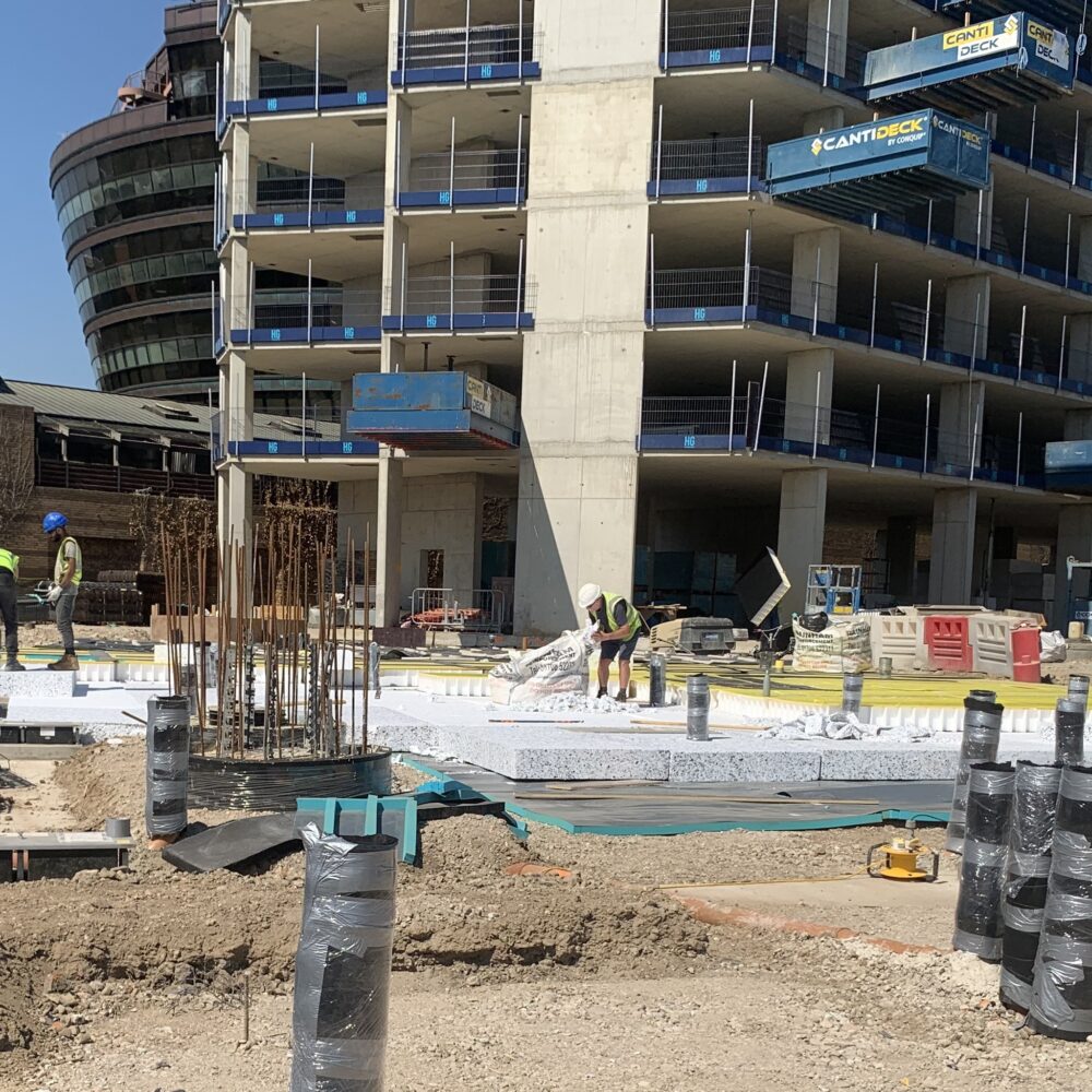 Entwickelt von Herr und entworfen von Rogers Stirk Harbour + Partners Dieses Bauprojekt umfasst Studentenwohnungen und ein Hotel mit 400 Zimmern, das auf dem ehemaligen Gelände des West London Magistrate’s Court errichtet werden soll. Das Projekt war jahrelang immer wieder auf Eis gelegt worden, doch im Dezember 2022 wurde schließlich ernsthaft damit begonnen, als Whitby Wood, mit dem wir in der Vergangenheit bereits eine Reihe von Projekten erfolgreich umgesetzt hatten, wandte sich an uns und bat um Unterstützung bei der Planung des Schwingungsisolierungssystems für das Gebäude.